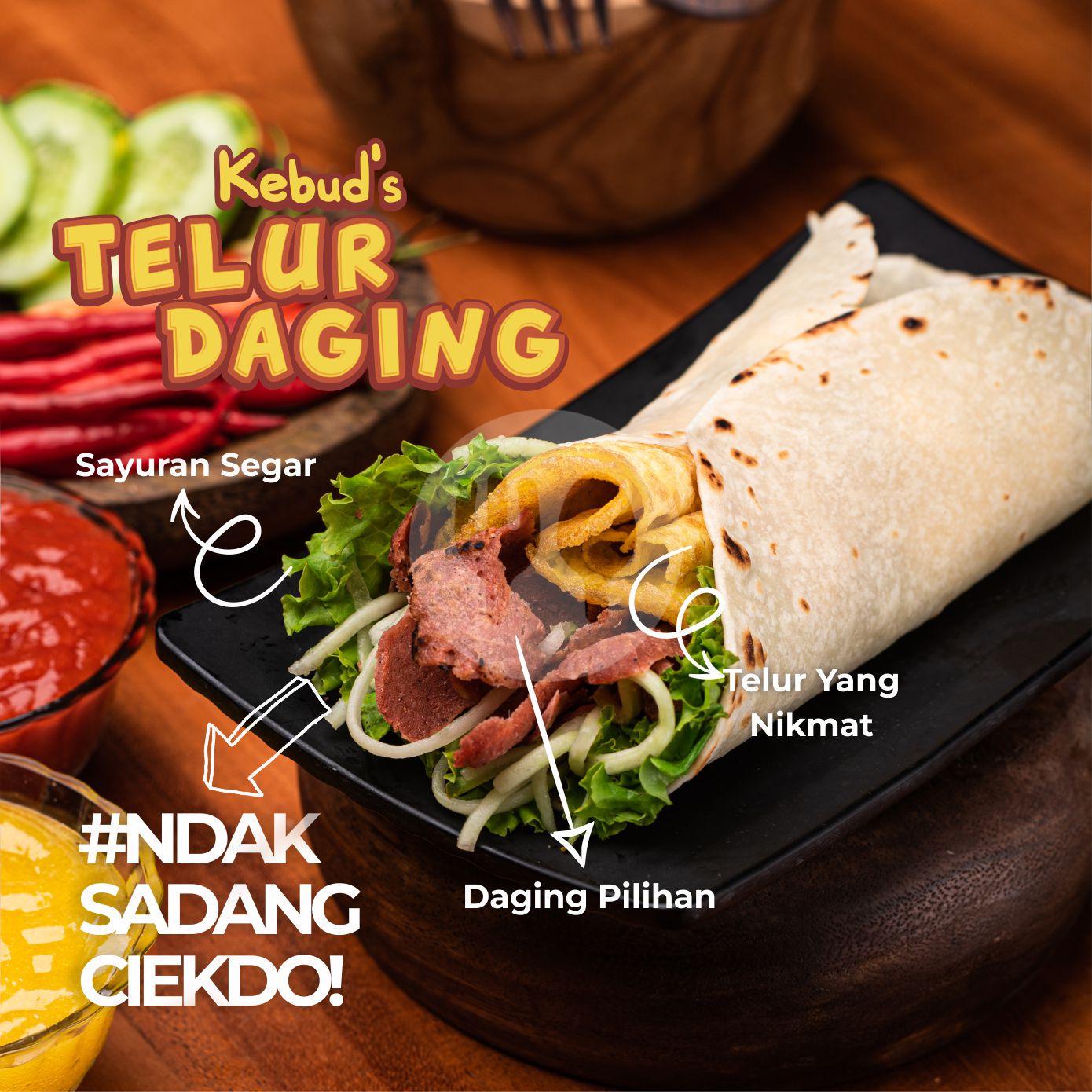 Daging, selada, timun, saus, mayonnaise, dan roti tortila.