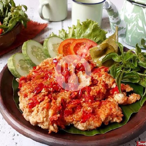 Ayam kriuk gurih disajikan dengan sambal terasi pedas, nikmat dan menggoda selera