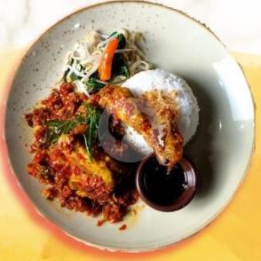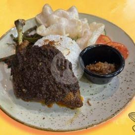 BEBEK YANG DI MASAK DENGAN BUMBU MADURA, DI SAJIKAN DENGAN NASI DAN SAYUR KANGKUNG BALACAN