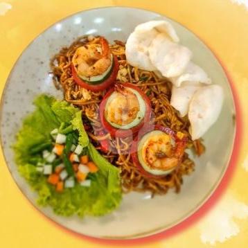 MIE KUNING GORENG YANG DI MASAK DENGAN ISIAN SEAFOOD, SAYURAN DAN TELUR