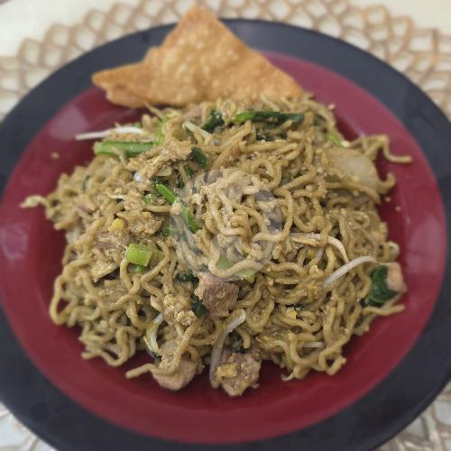 Mie Pangsit Dengan Potongan Daging Kecap, Daging Merah, Pangsit Goreng, Pangsit Rebus, Sayur Sawi, Tauge, Irisan Daun Bawang Dan Bawang Goreng. ( Non Halal )