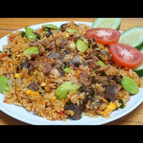 Nasi+telor+kaldu+hati Ampela+Petai+sayuran Dll
