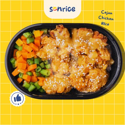 Pernah merasa hidup butuh bumbu baru? Cajun Chicken Rice ini jawabannya! Ayam juicy dengan saus Cajun yang bikin lidah kamu mikir: ‘Kenapa nggak coba yang beda?’ Saus Cajun-nya ada kombinasi mayones, mustard, madu, saus tomat, dan cajun herbs—rasanya creamy, pedas, asam, dan sedikit manis. Jadi, siap-siap merasa hidup lebih berani karena nyoba hal baru!!! (Satu porsi tdd 220 gr Nasi hangat pulan, 115 gr Chicken Popcorn dan 40 gr mix vege)