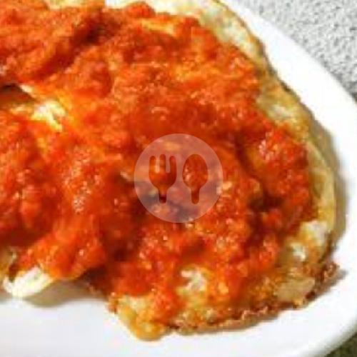 Nasi + Telur Mata Sapi Sambal + Tomat + Timun + Sendok + Kerupuk