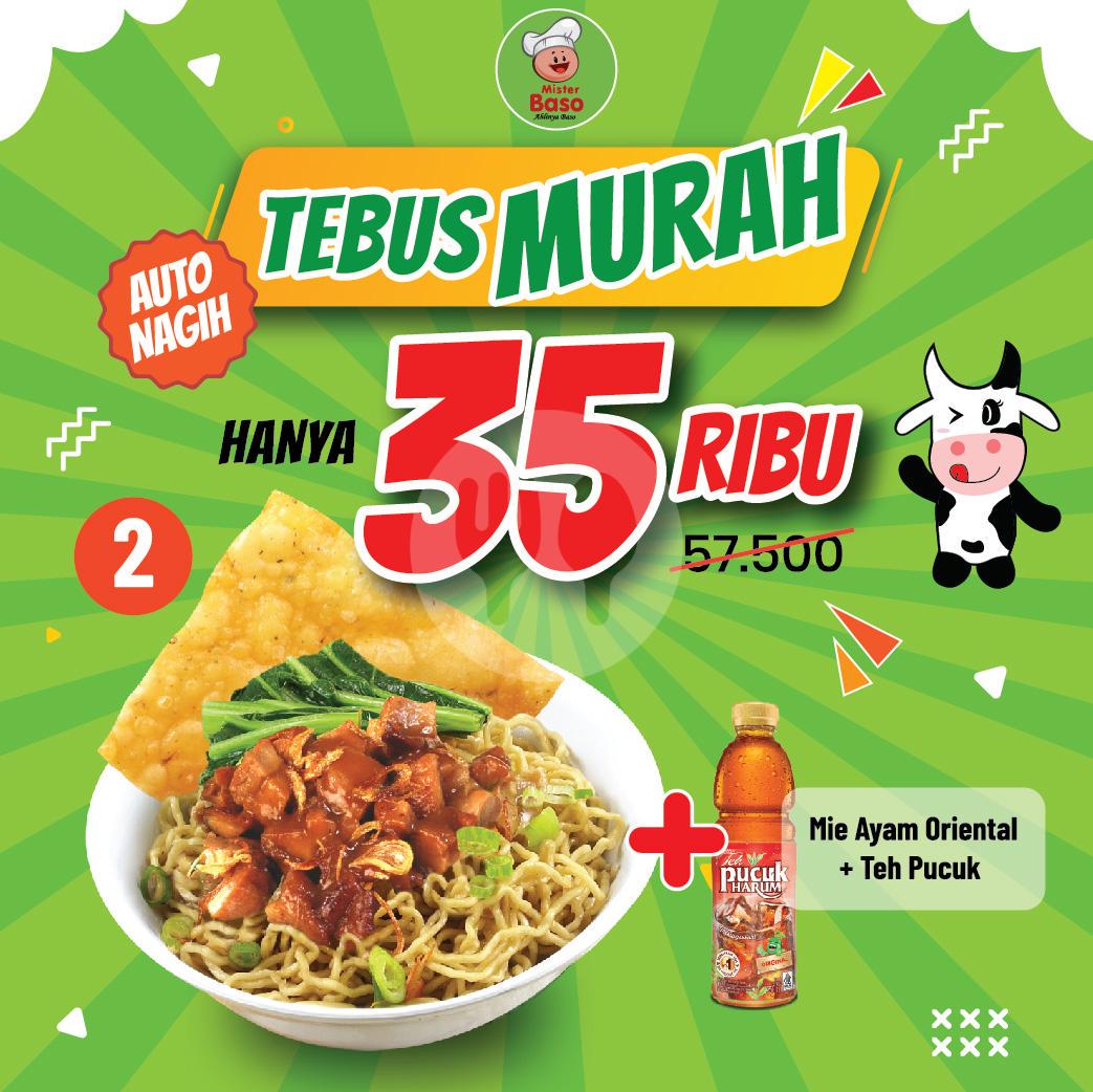 1 porsi mie ayam oriental khas mister baso dan 1pc teh pucuk 350ml