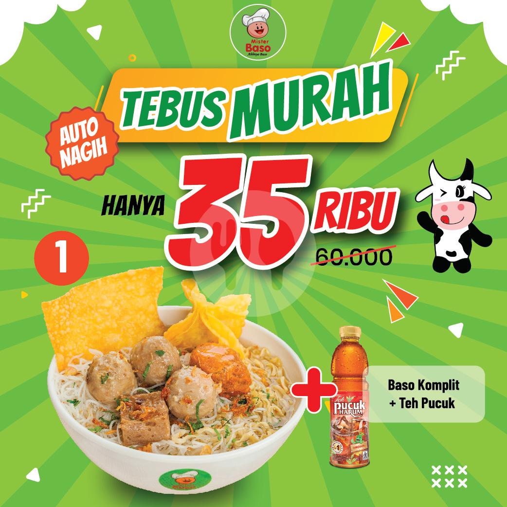 1 porsi bakso komplit khas mister baso dan 1pc teh pucuk 350ml