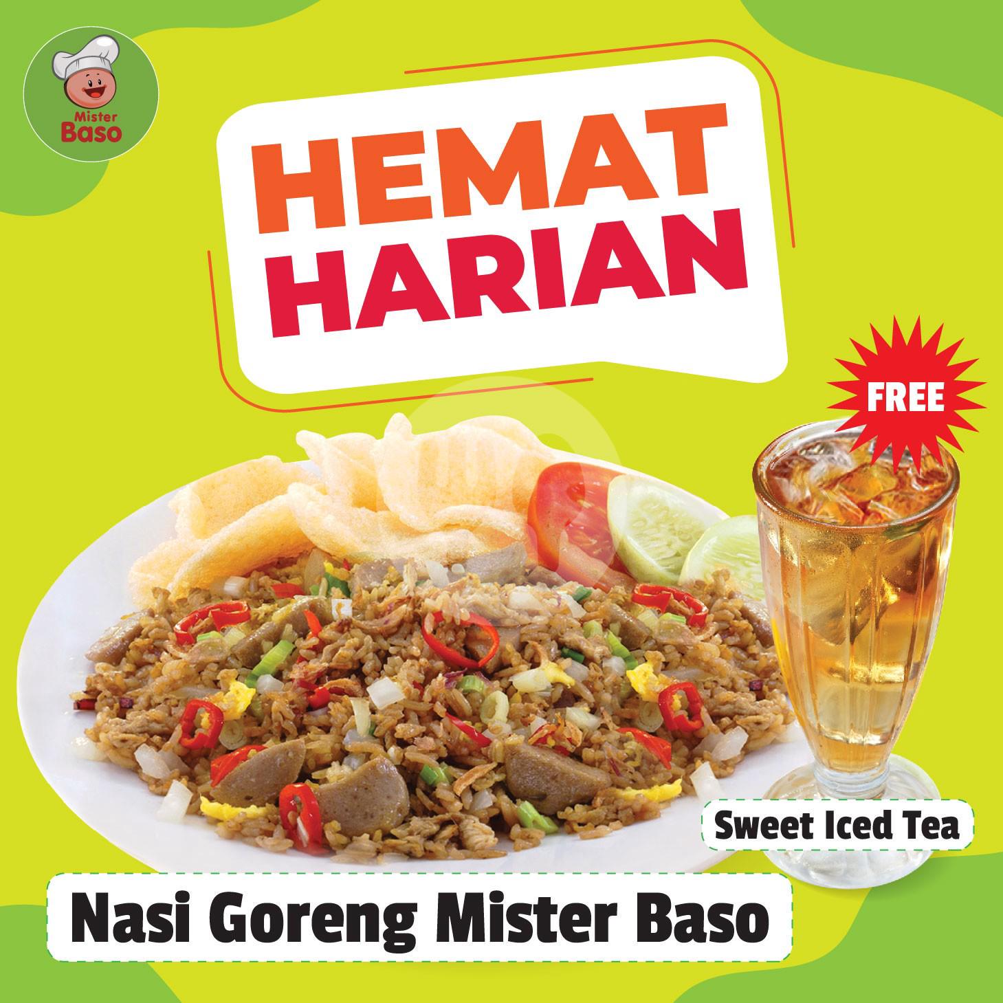 Paket Hemat, 1 Porsi NASI GORENG MISTER BASO plus baso halus yang kenyal, lengkap dengan pangsit goreng