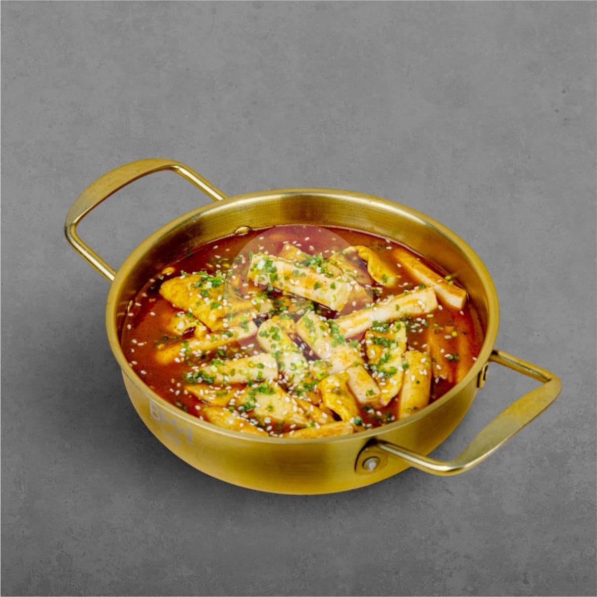 Hidangan Korea yang menggabungkan dua favorit, tteokbokki dan odeng, disajikan dalam saus pedas yang khas.