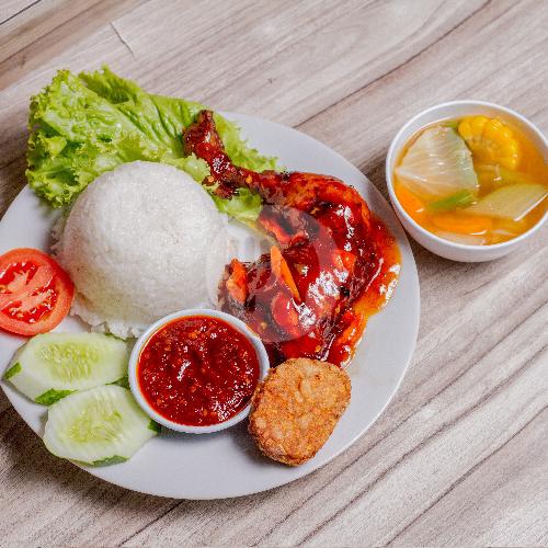Nasi + Ayam Saos Pedas + Tempe + Sayur Asam + Lalapan