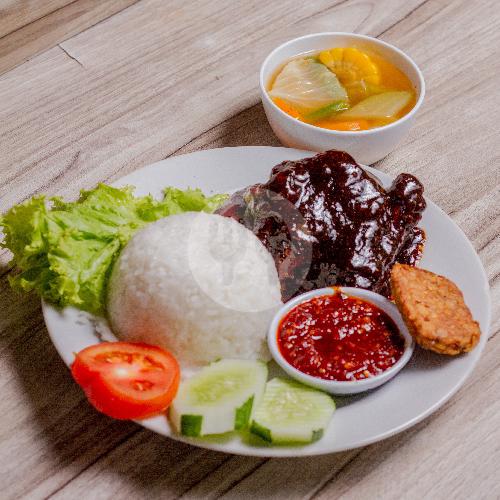 Nasi + Ayam Lada Hitam + Tempe + Sayur Asam + Lalapan