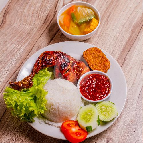 Nasi + Ayam Bakar Madu + Sambal + Tempe + Sayur Asam + Lalapan
