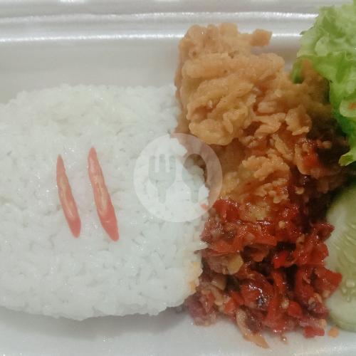 Nasi Pulen Dan Lauk Ayam kriwul Crispy Juicy Di Dalam Kriuk Di Luar Serta sambal chili oil Yang Pedas Menggugah Selera Makan Kita Dan Juga Dengan Lalapan Sayur Segar.