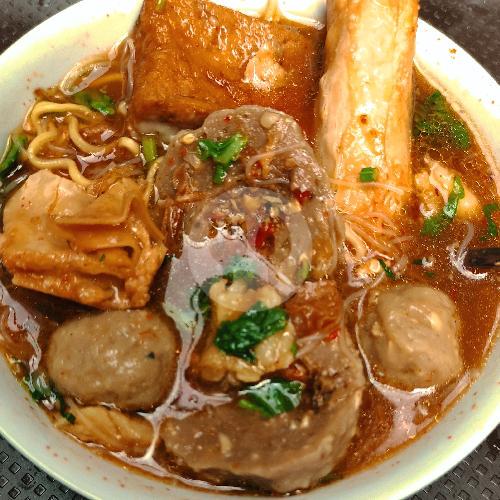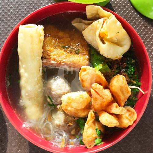 bakso halus 2, bakso cincang 1, tahu bakso 1, goreng panjang 1, goreng kembang 1, mie kuning, mie bihun