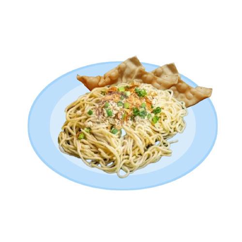 Mie Dengan Rasa Yang Asin Dan Gurih, Dilengkapi Dengan 2 Pangsit Ayam