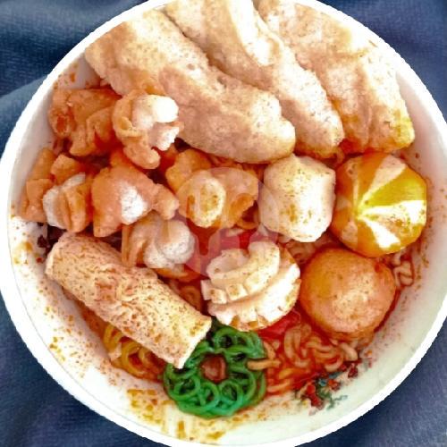 Kerupuk, Mie, Telor Orak Arik, Sosis, Cumi Flower, Dumpling Keju, Bola Udang, Bakso Ikan, Chikuwa, Cuanki, Somay Kering