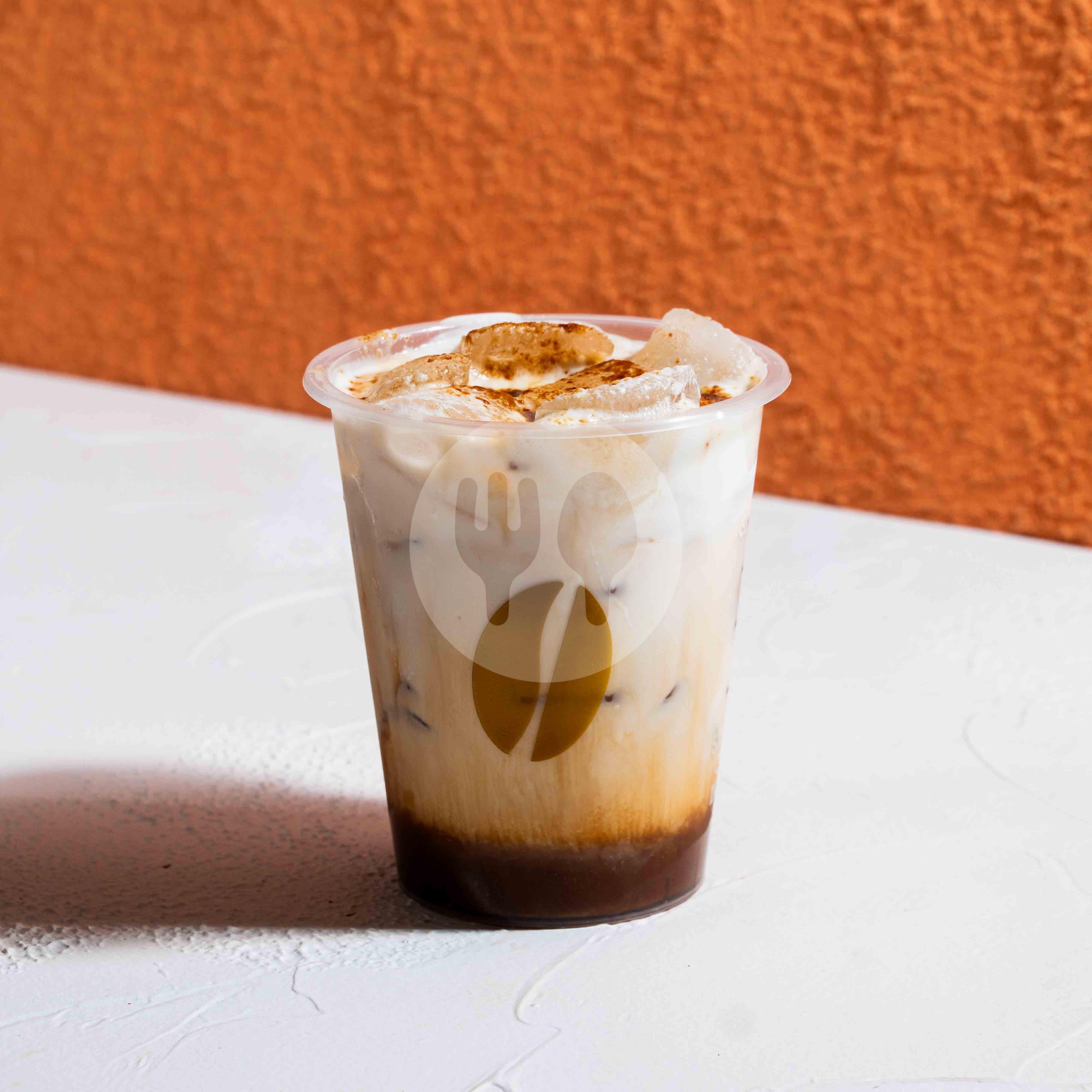 Brown sugar, white choco syrup, butterscotch sauce, espresso, arasta milk, vanilla milk foam