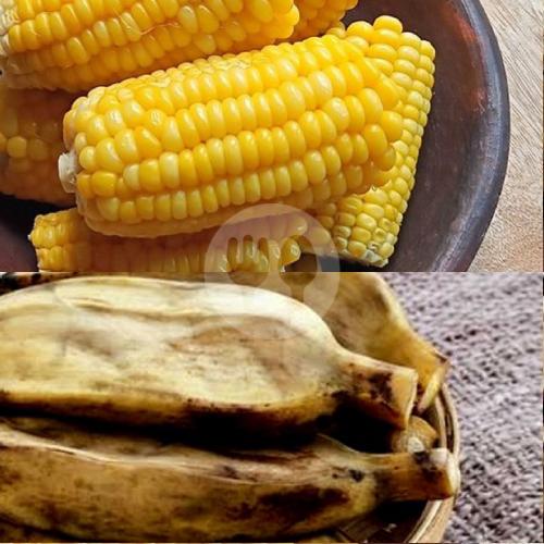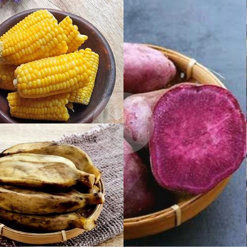 Jagung manis, pisang kepok kuning dan ubi kukus (varian ubi sesuai stok)