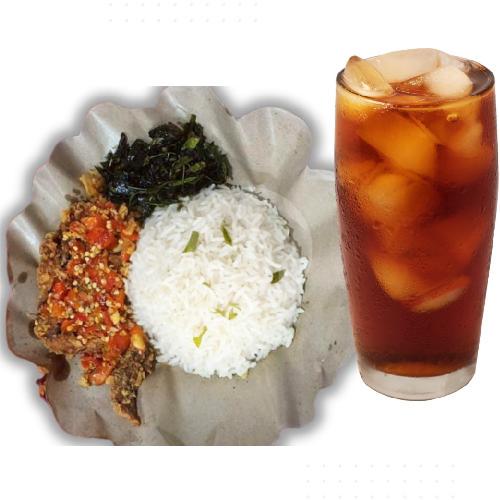 Ayam Geprek + Nasi Putih + Sambal Korek + Kangkung + Es Teh