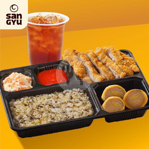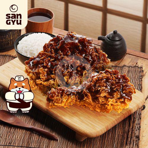 2 pcs ayam goreng dengan pilihan saus Jepang ala Gyu. Disajikan dengan nasi putih hangat.