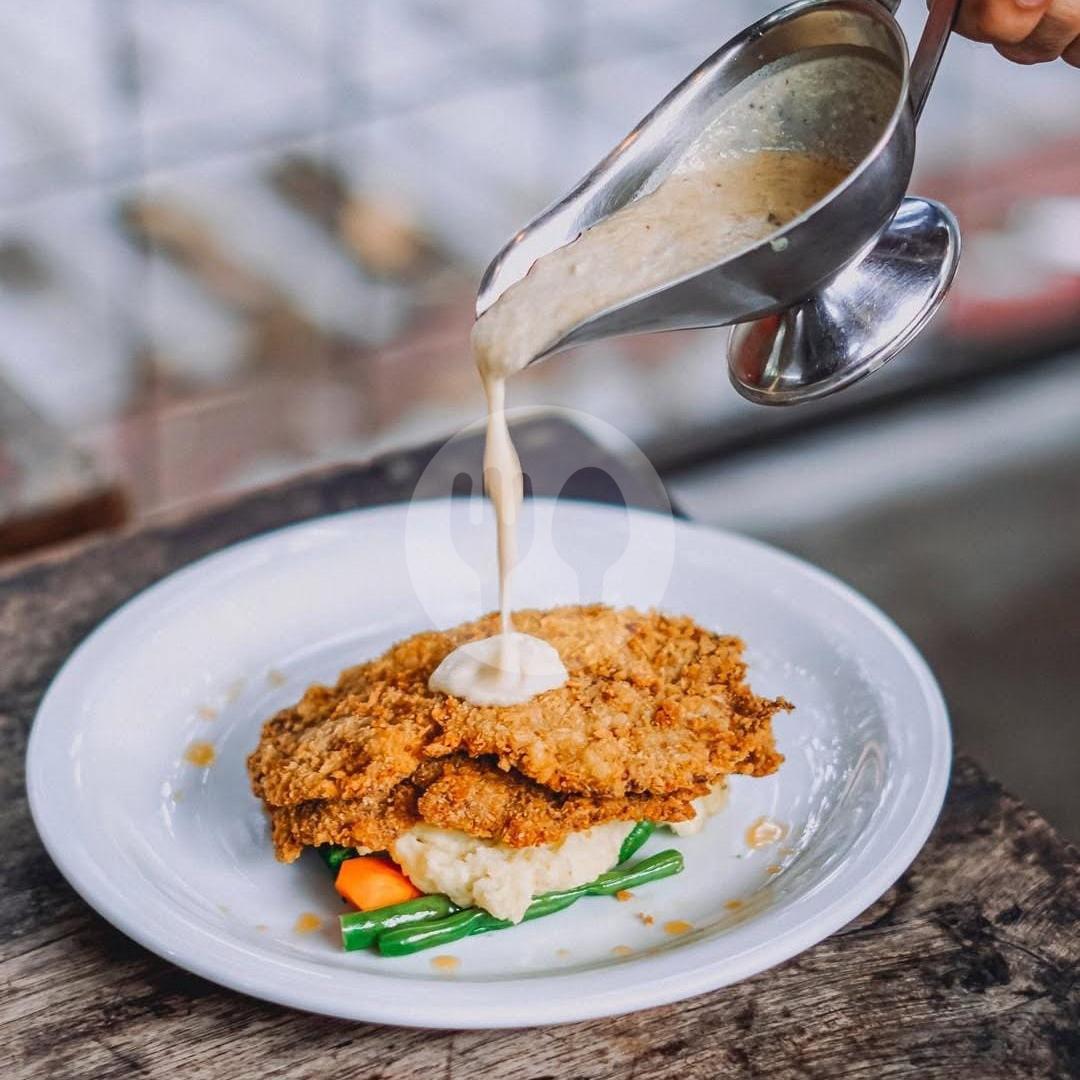 Steak Ayam Fillet Gulung digoreng tepung dengan isian keju dan sosis
