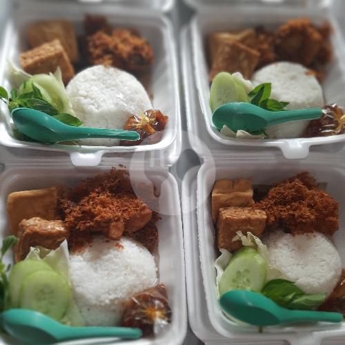 Nasi + ayam goreng ditabur kremesan lengkuas + tahu tempe + lalapan + sambal terasi / korek menurut selera
