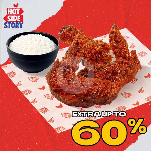 3 Pcs Korean Chicken Wings dengan Nasi. Pilih 1 rasa.