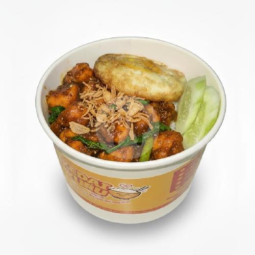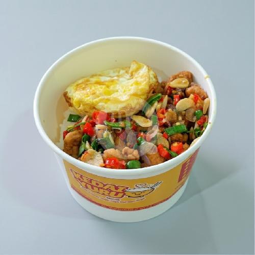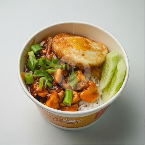 Nasi ayam telur dengan saus pedas manis