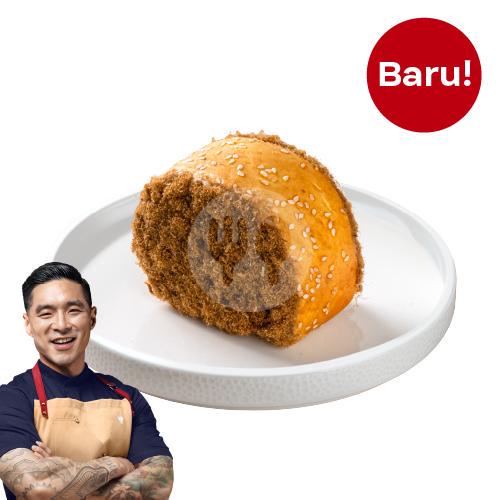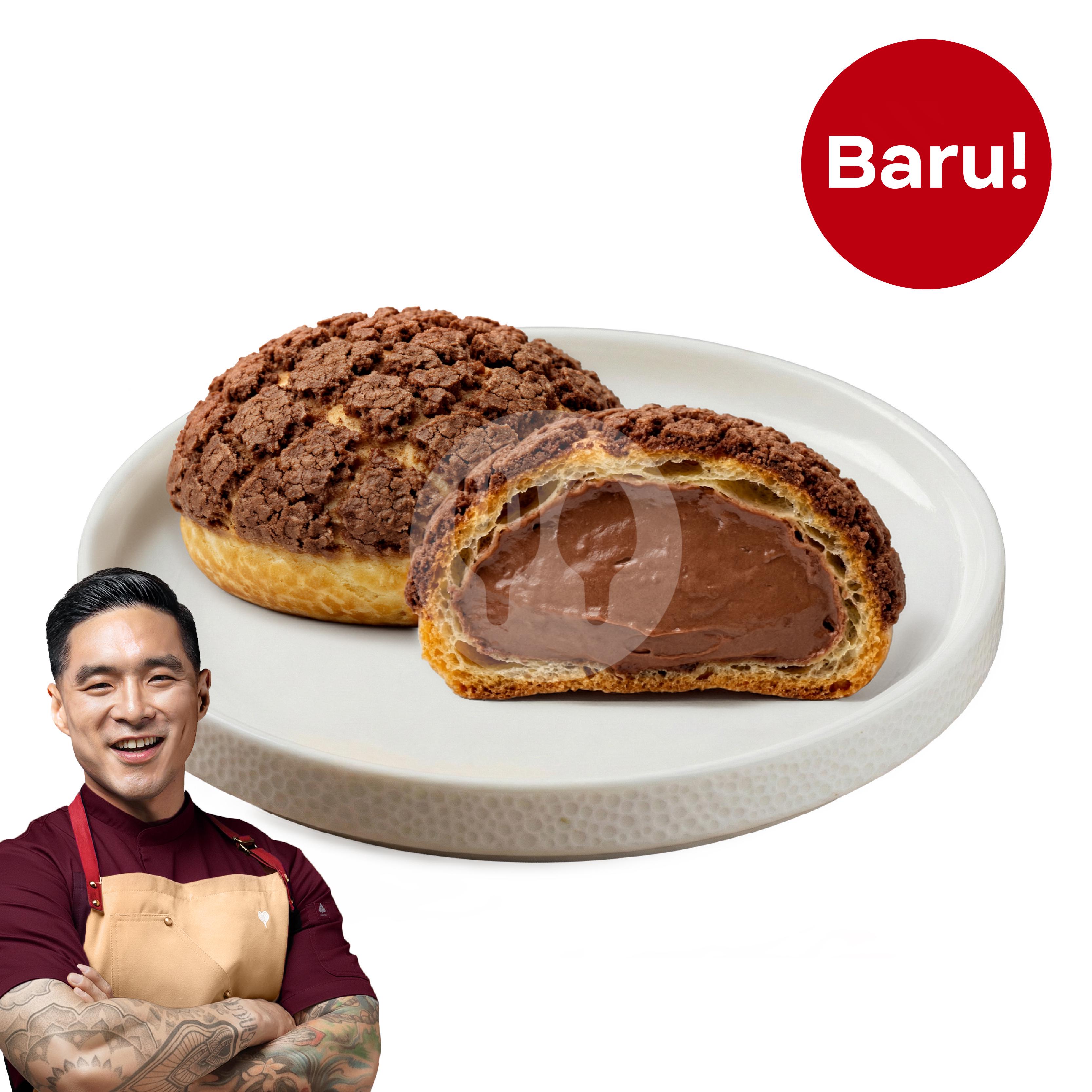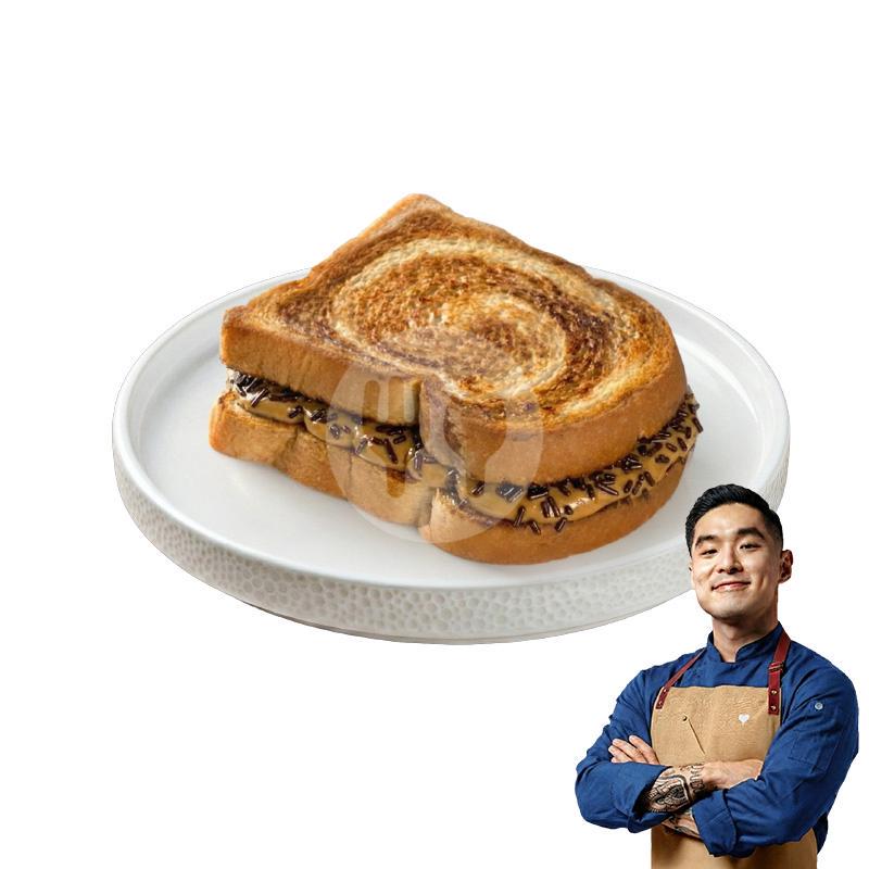 Roti toast marble cokelat dengan isi krim mocha dan taburan cokelat sprinkle