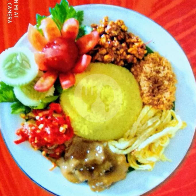 Nasi Kuning + Daging Sapi + Srundeng + Kering Tempe + Telur Dadar + Sambel Goreng Balado