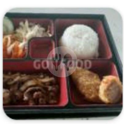 Beef teriyaki 1 + ayam gulung telur 1 + udang gulung 1 + nasi + salad