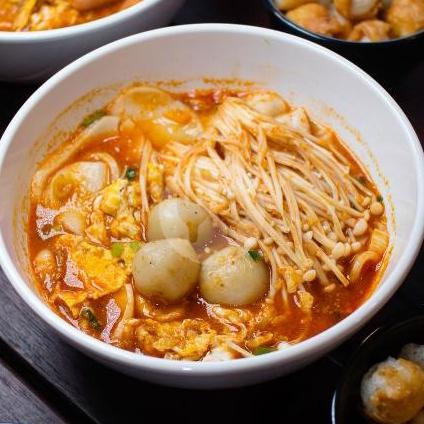 Telur, Krupuk seblak, Daun bawang, Cilok, Jamur enoki, Siomay pilus