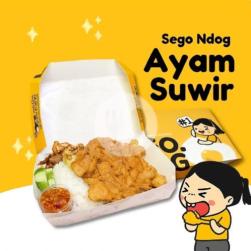 Nasi + telur dadar + ayam suwir + sambel + kuah gulai + timun