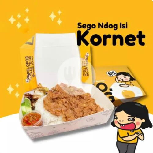 Nasi + telur dadar isi kornet + sambal + Kuah Gulai + Timun