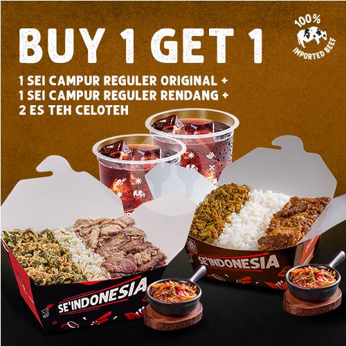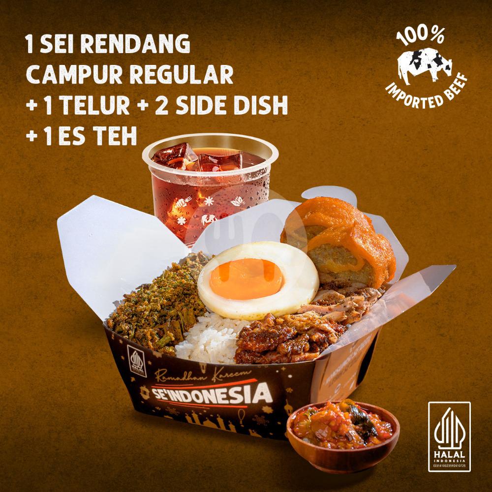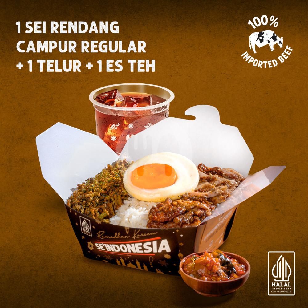 1 Ricebox Sei Campur Rendang Reguler + 1 Telur Mata Sapi + 1 Es Teh Celoteh
