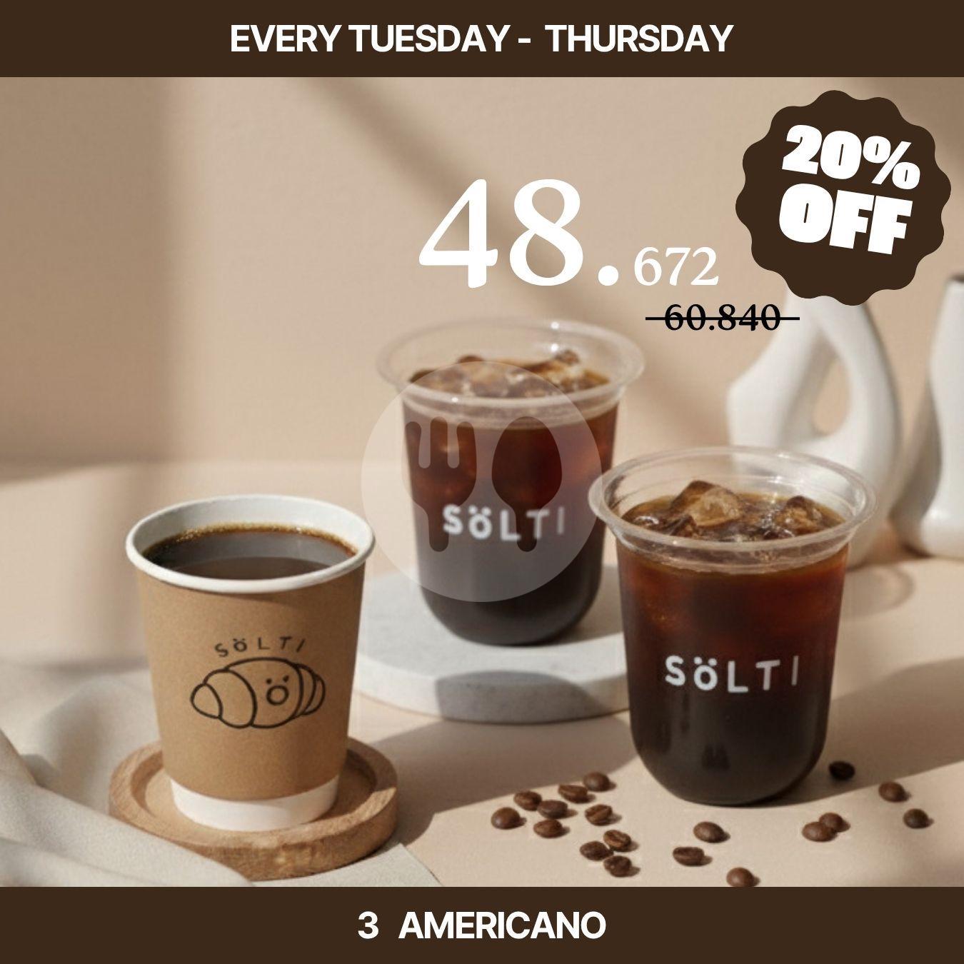Beli 3 sölti og dapat harga spesial! Kopi khas dari Sölti yang creamy, strong, dan bikin melek seharian. **Jangan lupa tulis preferensi minuman kamu di catatan ya!