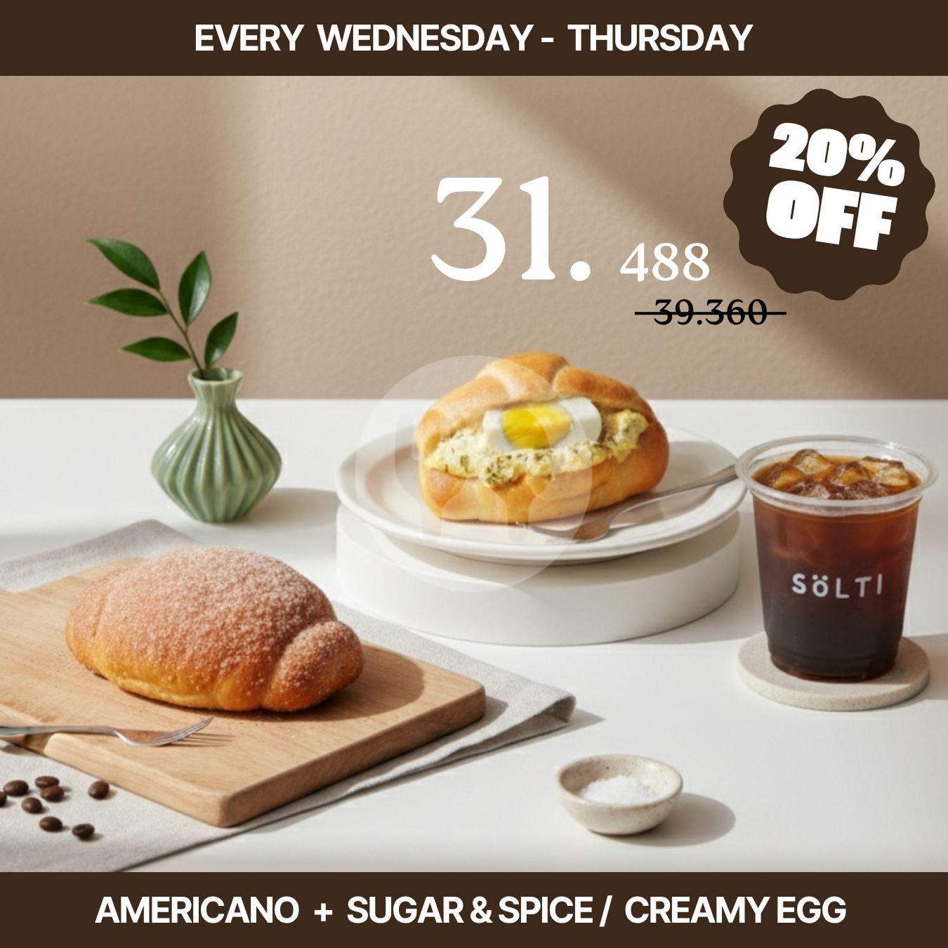 Ngopi sambil ngemil makin hemat! Beli Americano + Salt Bread (Sugar & Spice / Creamy Egg) dengan harga spesial. Kombinasi kopi pahit dan roti asin manis yang nggak pernah gagal. *Jangan lupa tulis preferensi minuman kamu di catatan ya!