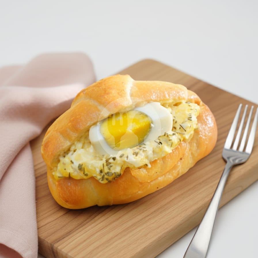 Salt bread berisi creamy egg dan mayo yang rich. Rasa gurih lembutnya meleleh di mulut, comfort food sejati untuk pecinta telur.
