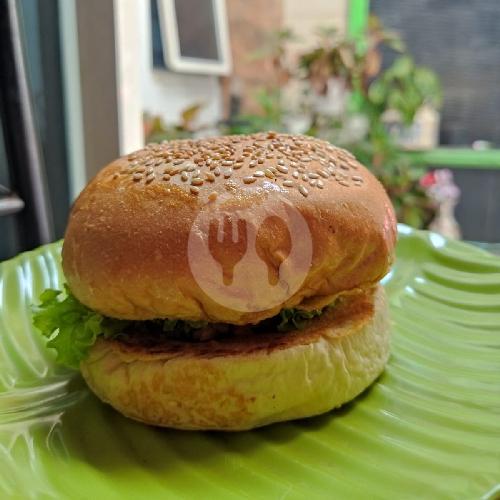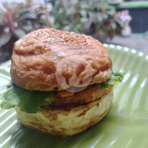 Bun, Salmon Patty, Sayur , Saos