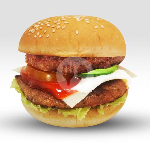Roti Burger + Daging Sapi 2pcs + Sayuran + Mayones + Saos Tomat + Keju Slice