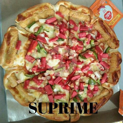 Burger Sapi, Bawang Bombay, Paprika Hijau, Jamur Kancing, Tomat,Keju Mozzarella