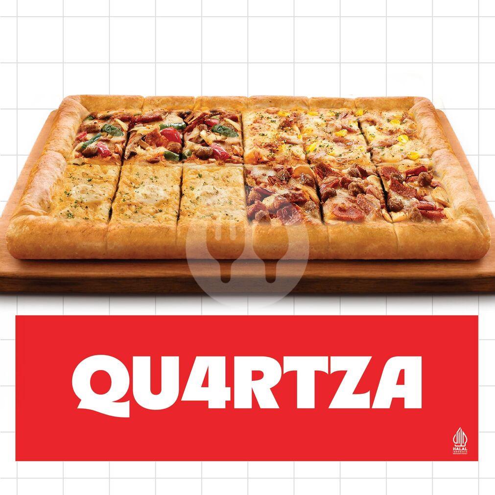 Pizza berbentuk persegi dengan 4 topping favorit: Super Supreme (Beef/Chicken), Meat Lovers (Beef/Chicken), Tuna Melt/Pepperoni, Cheese Lovers