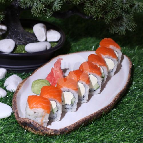 Keju, tempura dengan salmon mozzarella dan mayo pedas.