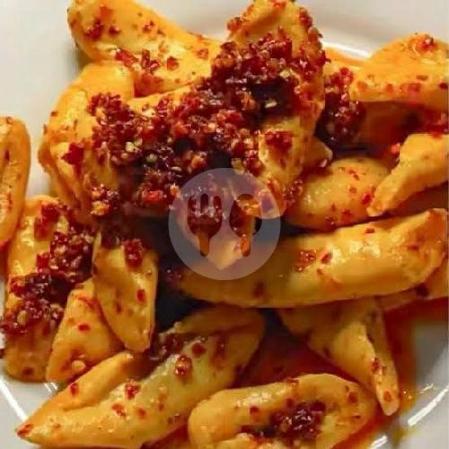 Otak ikan lembut dengan minyak cabai pedas dan rempah segar.