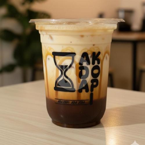 Minuman dingin yang terdiri dari espresso, caramel dan susu