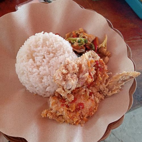 nasi + ayam krispy + sambel lalap