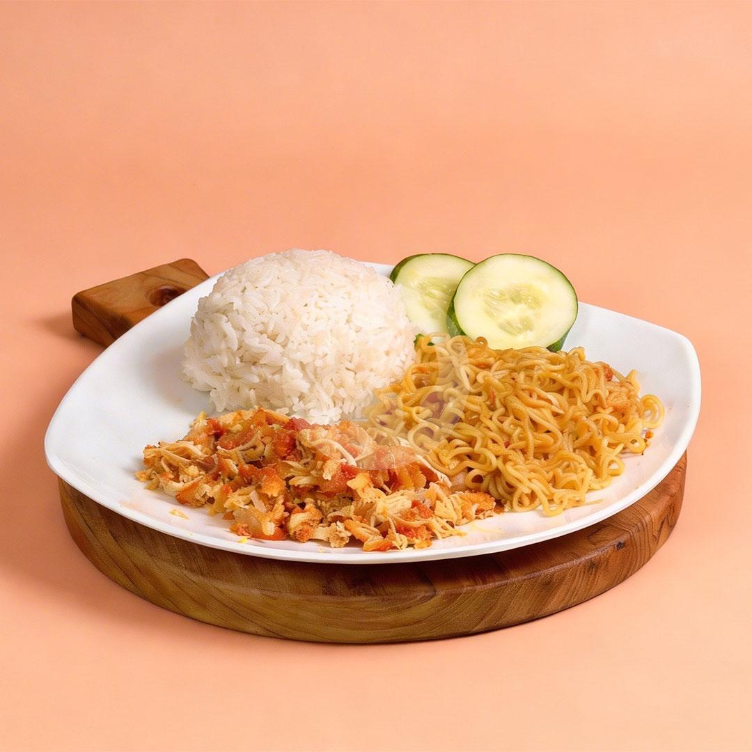 Paket geprek dengan pilihan sambal + indomie dijamin bikin kamu kenyang seharian