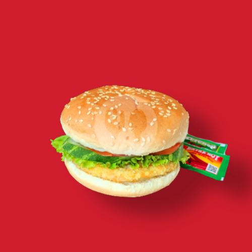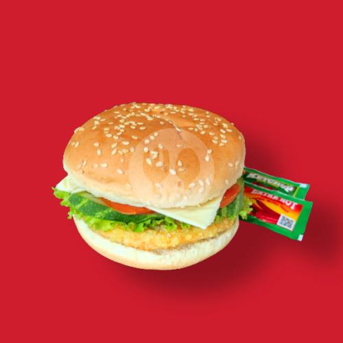 Chicken Burger Dengan Patties Ayam Tebal + Keju Slice/ Cheese + Sayuran + Saus Del Monte