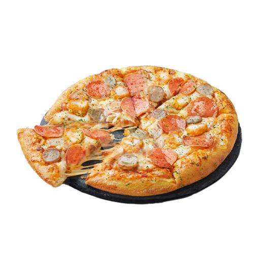 Tomato Sauce, Chicken Sausage, Parsley, Chicken Pepperoni, Chicken Strips & Mozzarella Cheese