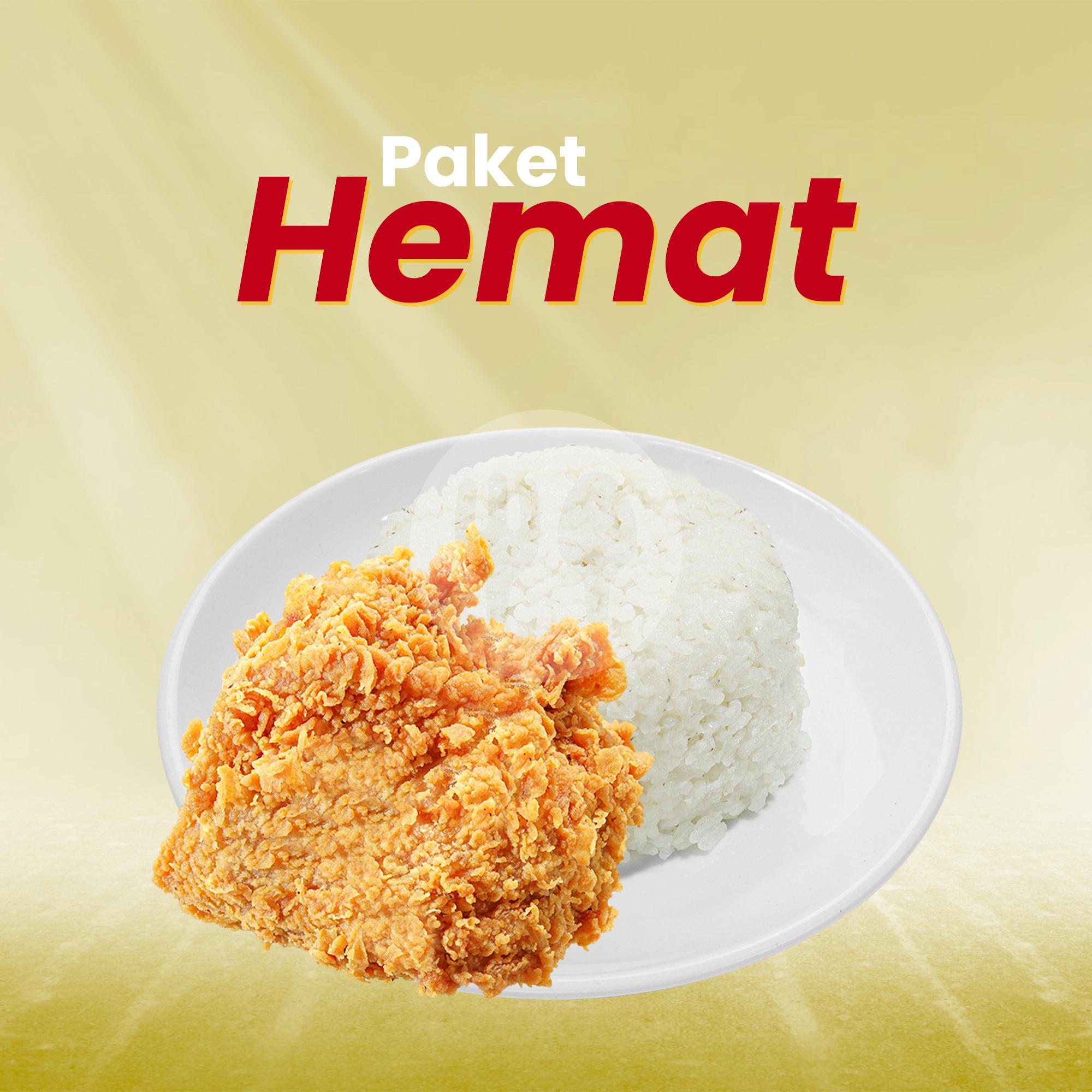 Nasi putih + ayam dada krispi + 2 saos sachet
