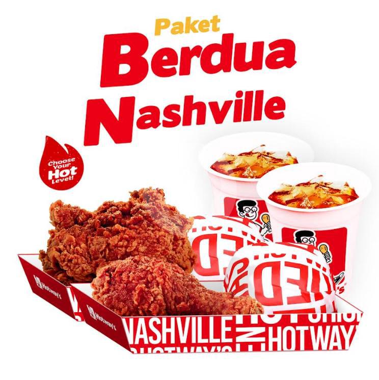 2 nasi + 1 nashville dada/paha atas + 1 nashville paha bawah/sayap + 2 reguler ice tea (tidak bisa memilih varian ayam)